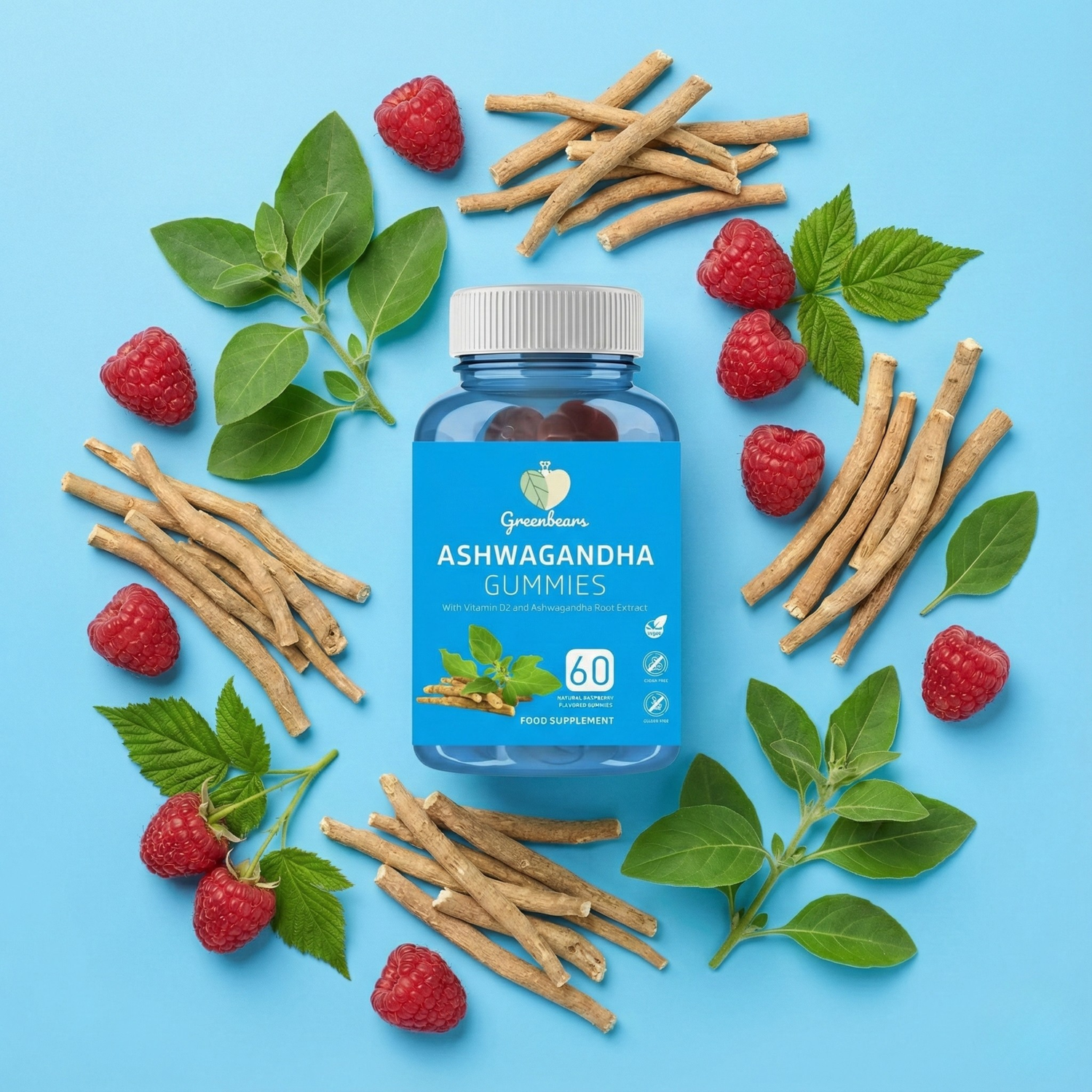 Busy life? Stressful days? Let Green Bears Ashwagandha Gummies bring you back to balance. Packed with nature’s finest Ashwagandha Root Extract and Vitamin D2, these vegan, sugar-free gummies are here to support your emotional wellbeing and mental clarity—without any artificial ingredients or unnecessary additives.